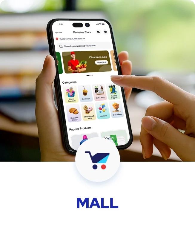 Hab Pembelian Atas Talian eksklusif, MALL, menawarkan pilihan produk dan perkhidmatan berkualiti daripada PERNAMA dan peniaga yang dipercayai pada harga kompetitif dan diskaun khas. Direka untuk kemudahan pengguna, ia menawarkan pengalaman membeli-belah yang lancar merangkumi keperluan asas dan barangan khas. Dengan promosi berorientasikan nilai dan sokongan terhadap peniaga terpilih, MALL mengukuhkan kuasa beli komuniti serta menyokong perdagangan digital yang mampan.